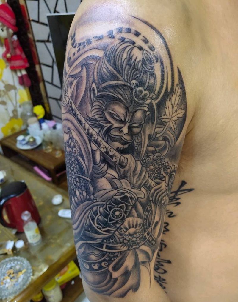 孙悟空送手稿纹身图片_肩部手臂老传统纹身图案
