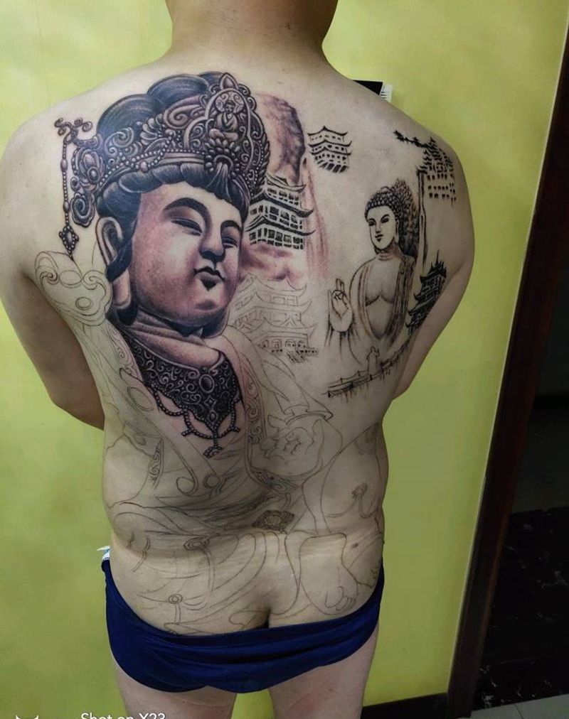 当前位置: 首页 >山西省太原市纹身店-太原翼龙刺青工作室纹身图案>普贤菩萨纹身图片_背部臀部老传统新传统纹身图案