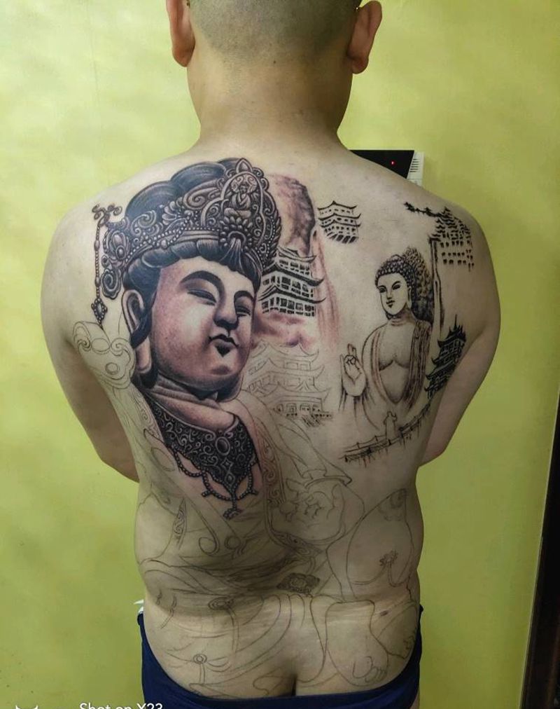 当前位置: 首页 >山西省太原市纹身店-太原翼龙刺青工作室纹身图案>普贤菩萨纹身图片_背部臀部老传统新传统纹身图案