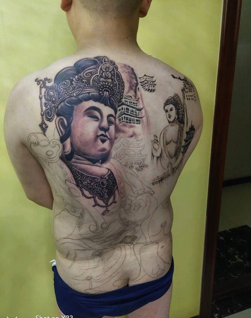 普贤菩萨纹身图片_背部臀部老传统新传统纹身图案