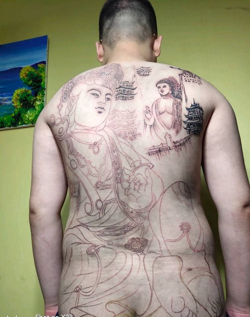 普贤菩萨纹身图片_背部老传统新传统纹身图案