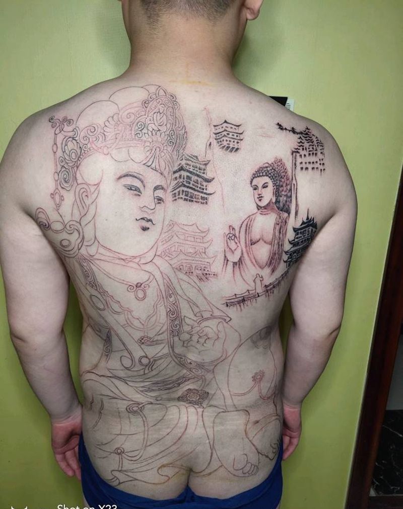 普贤菩萨纹身图片_背部老传统新传统纹身图案