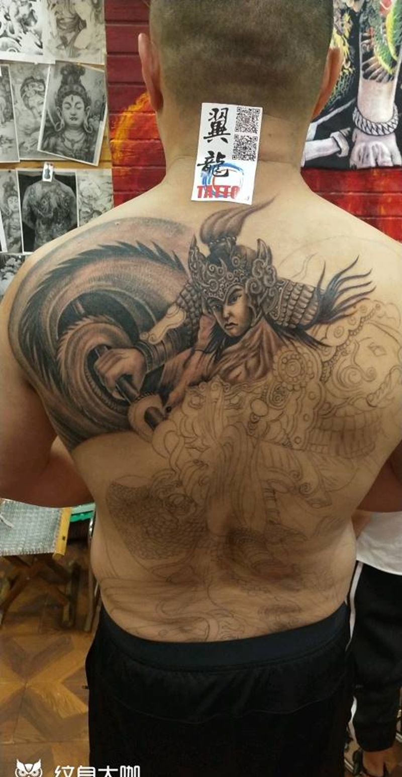 当前位置: 首页 >山西省太原市纹身店-太原翼龙刺青工作室纹身图案>赵云纹身图片_背部传统肖像动物人物成品手稿插画纹身图案