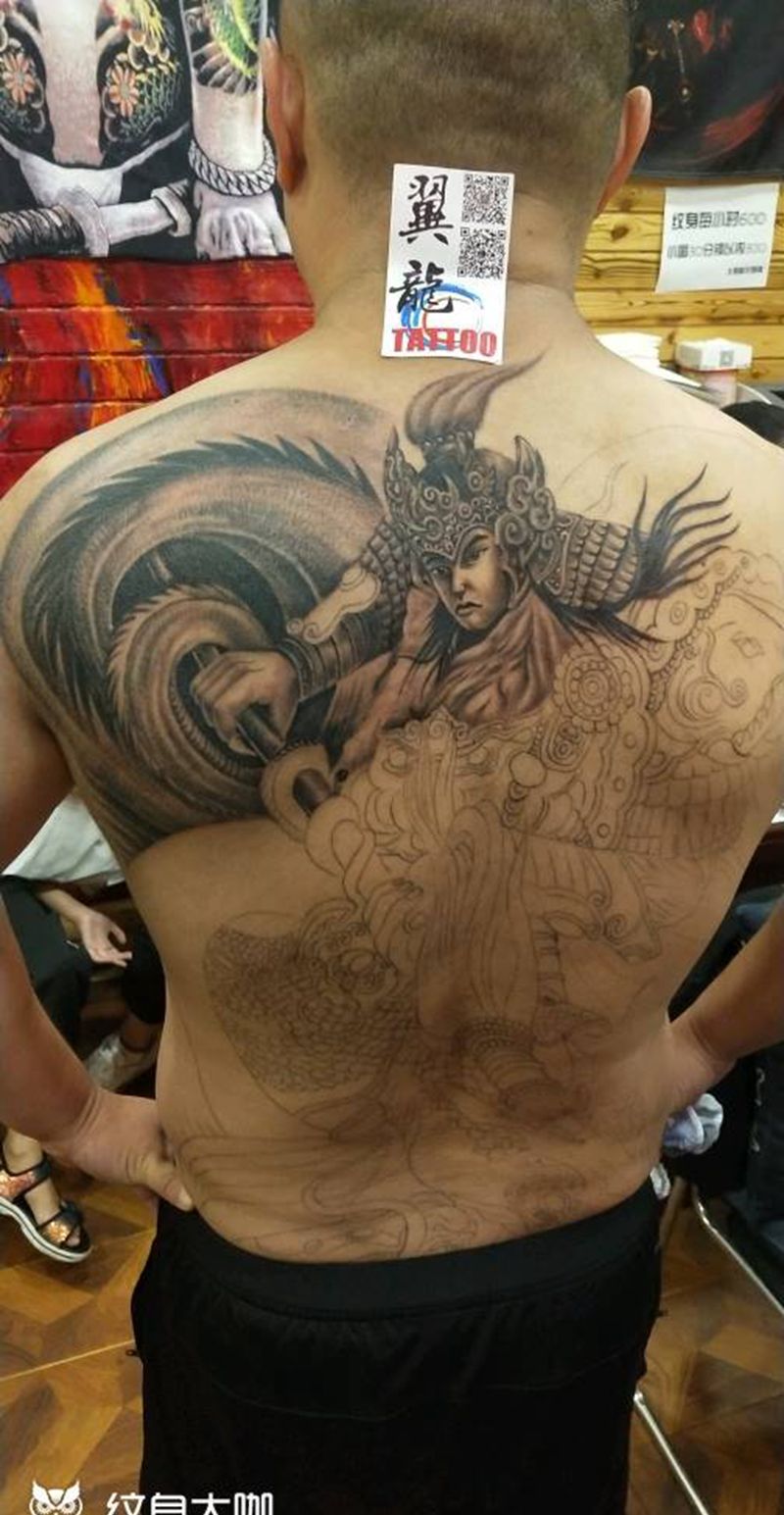 当前位置: 首页 >山西省太原市纹身店-太原翼龙刺青工作室纹身图案>赵云纹身图片_背部传统肖像动物人物成品手稿插画纹身图案