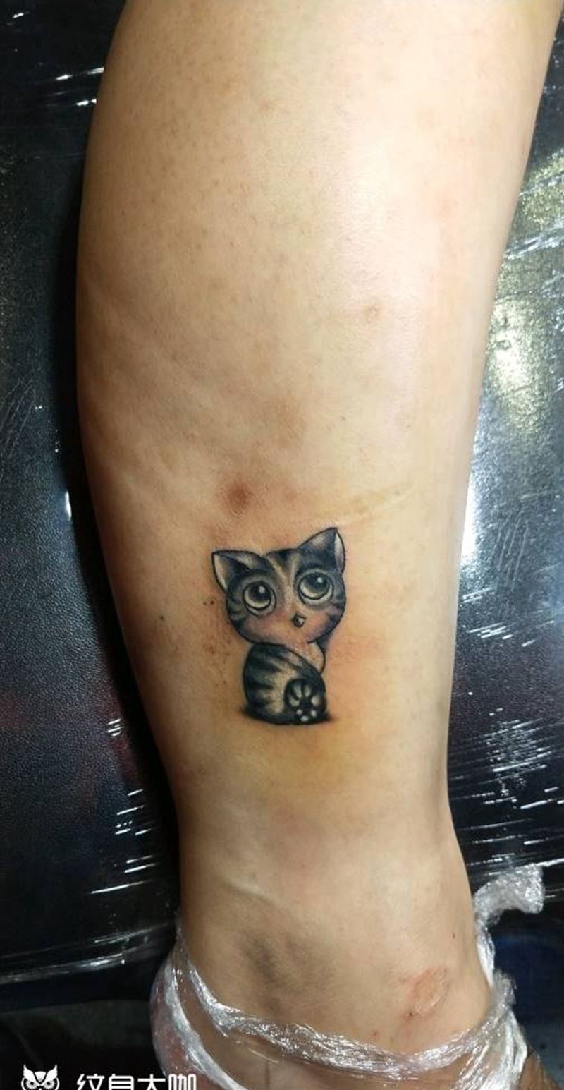 当前位置: 首页 >山西省太原市纹身店-太原翼龙刺青工作室纹身图案>小猫咪纹身图片_腿部脚部传统动物成品手稿纹身图案
