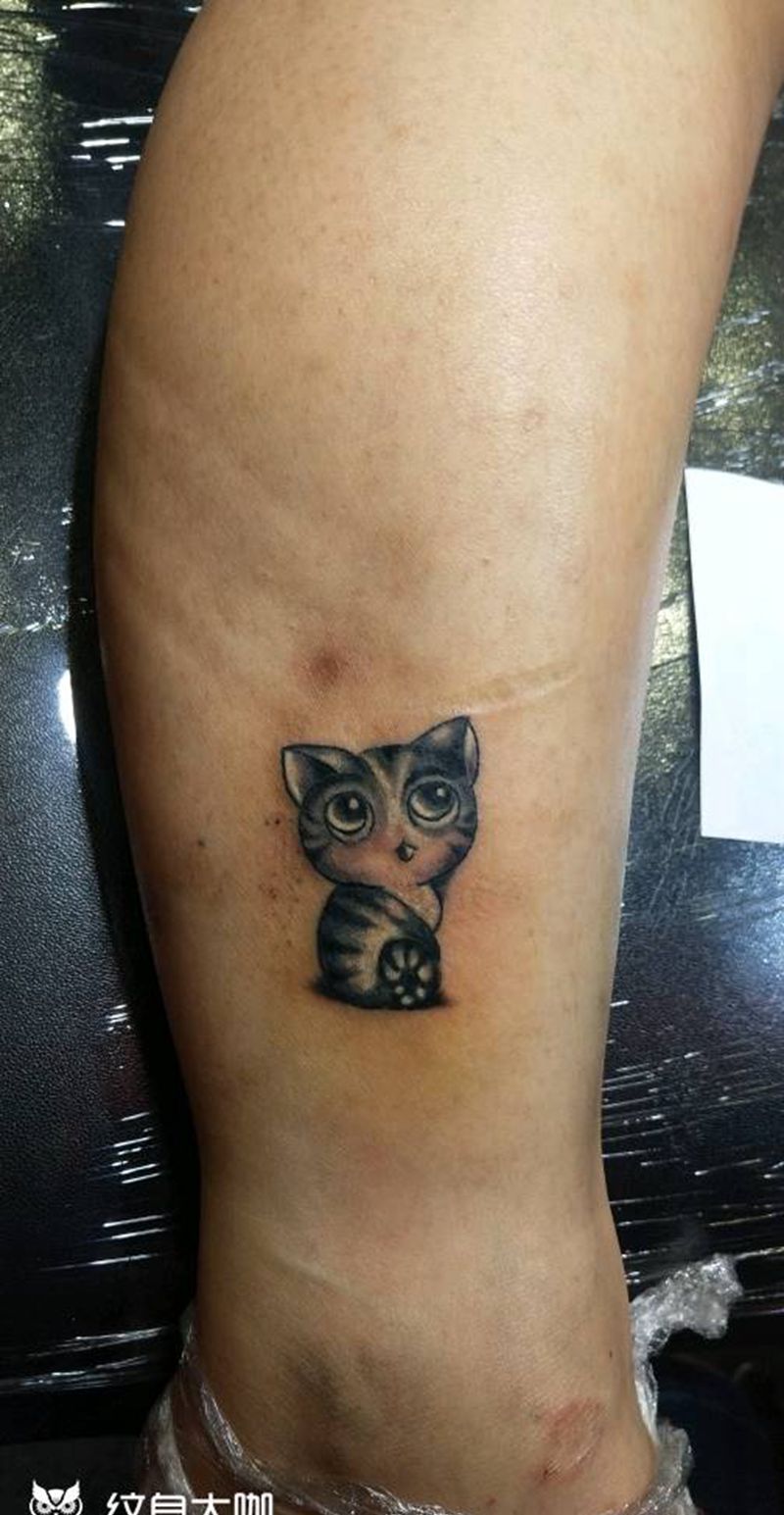小猫咪纹身图片_腿部脚部传统动物成品手稿纹身图案