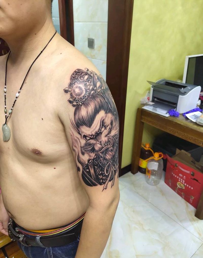 行者纹身图片_手臂肩部老传统纹身图案