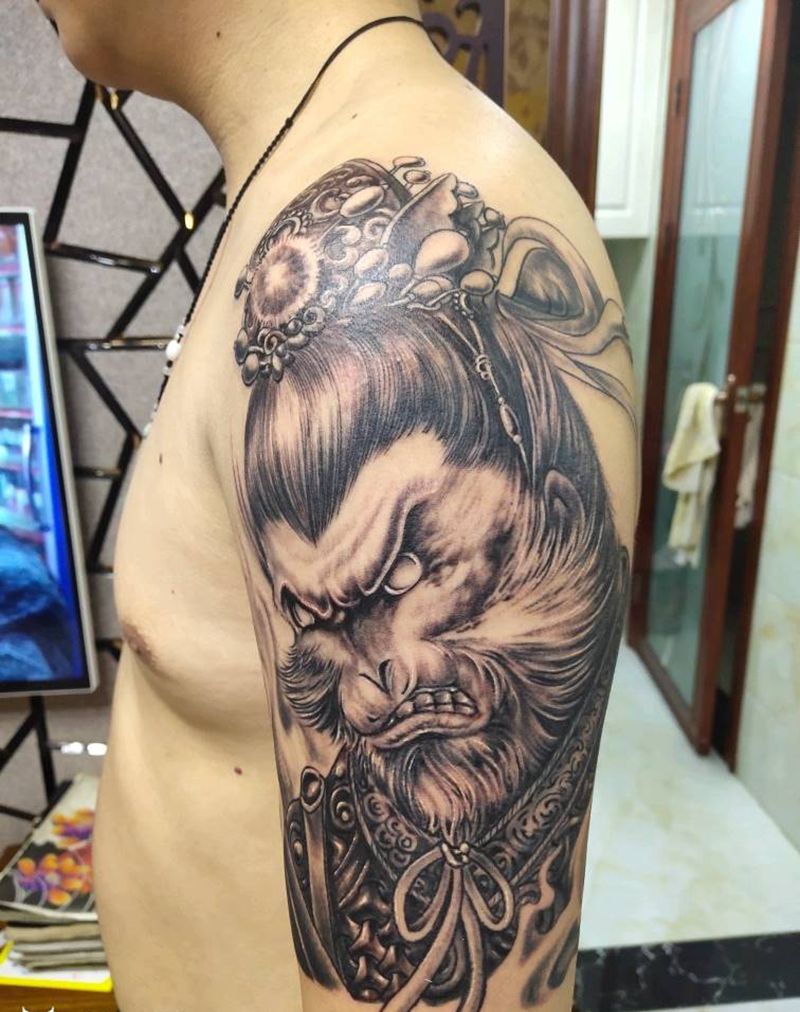 行者纹身图片_手臂肩部老传统纹身图案