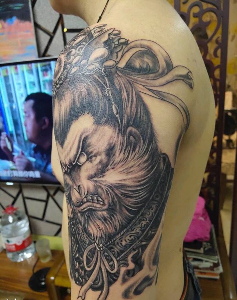 当前位置: 首页 >山西省太原市纹身店-太原翼龙刺青工作室纹身图案>行者纹身图片_手臂肩部老传统纹身图案