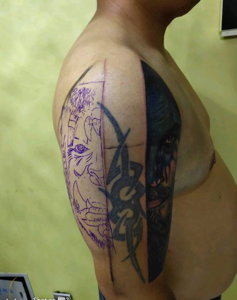 • 纹身吧推荐的披肩图腾半胛纹身图案作品展示