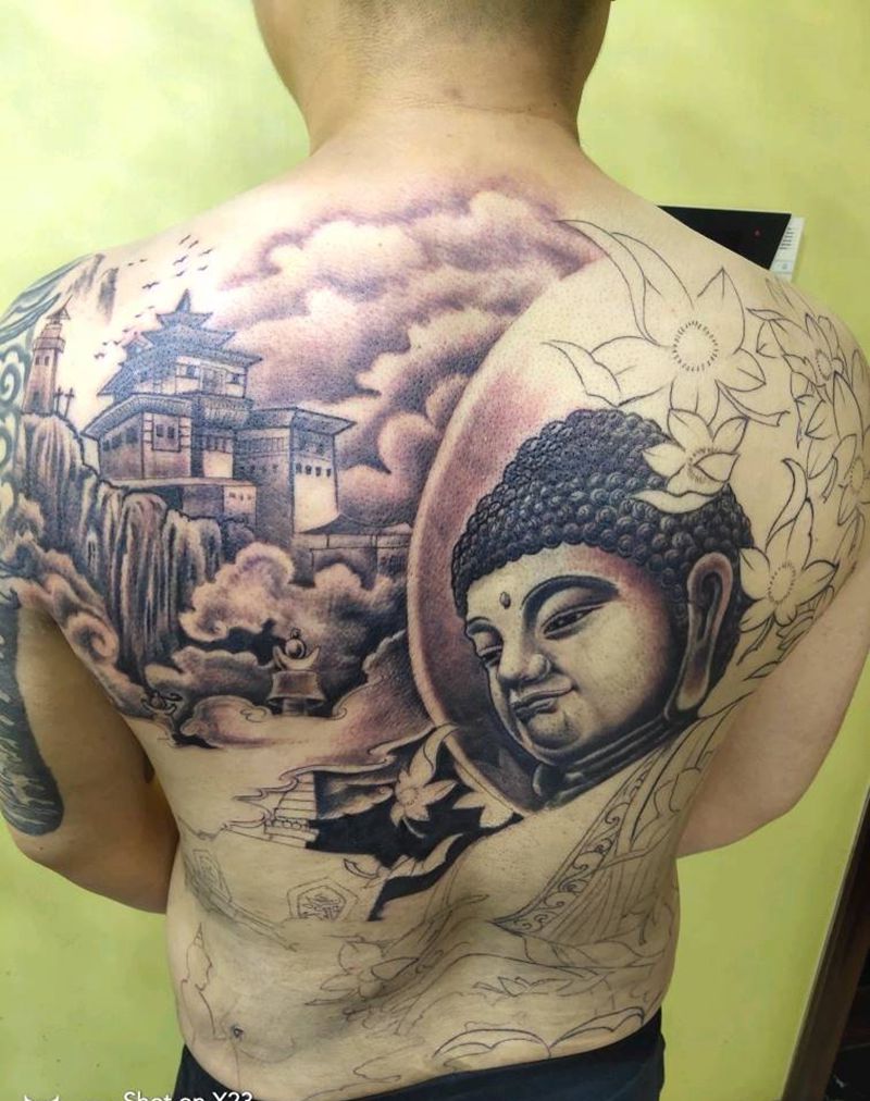 当前位置: 首页 >山西省太原市纹身店-太原翼龙刺青工作室纹身图案>大日如来纹身图片_背部臀部新传统纹身图案