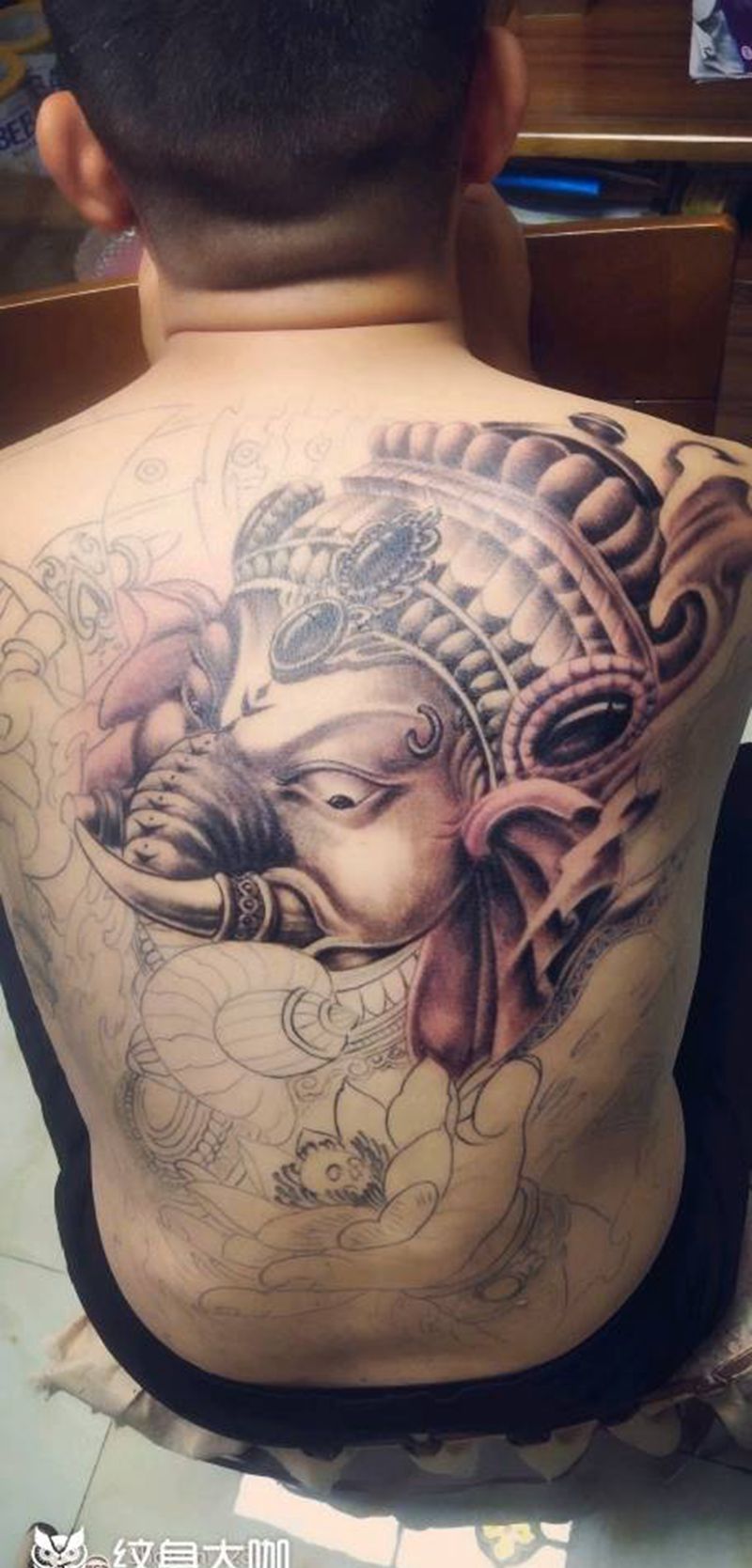 当前位置: 首页 >山西省太原市纹身店-太原翼龙刺青工作室纹身图案>象神纹身图片_背部新传统纹身图案