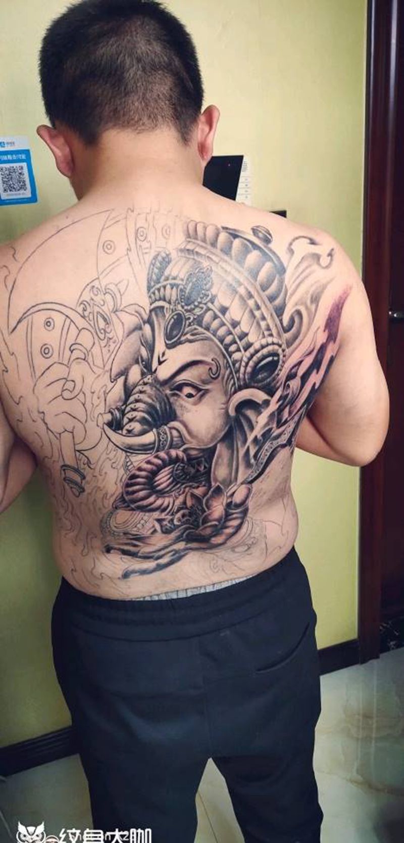 当前位置: 首页 >山西省太原市纹身店-太原翼龙刺青工作室纹身图案>象神纹身图片_背部老传统纹身图案