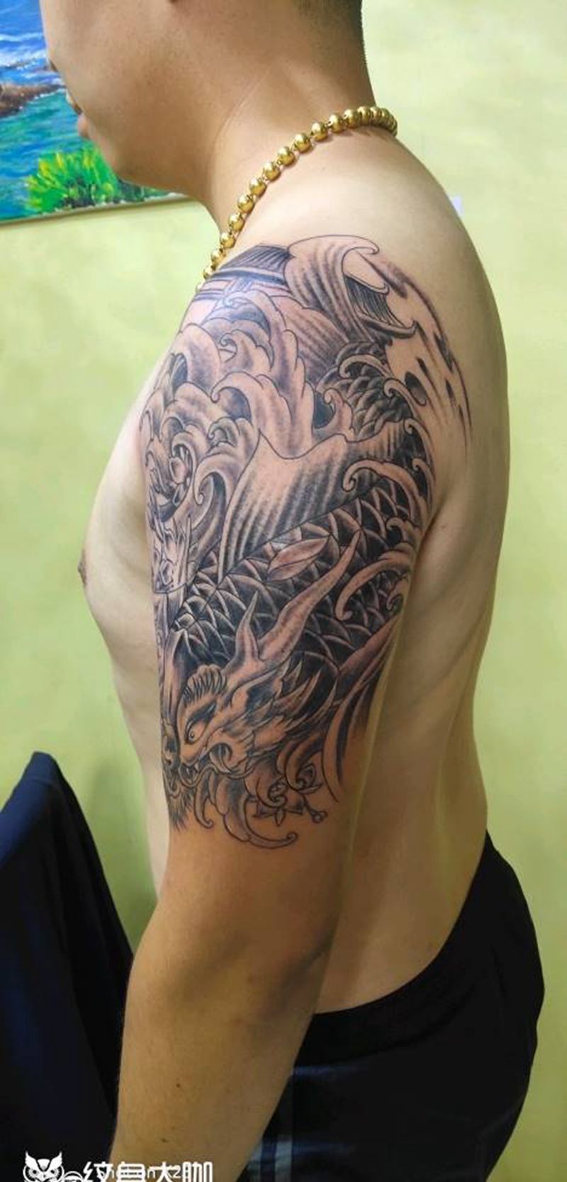 • 纹身吧推荐的披肩图腾半胛纹身图案作品展示