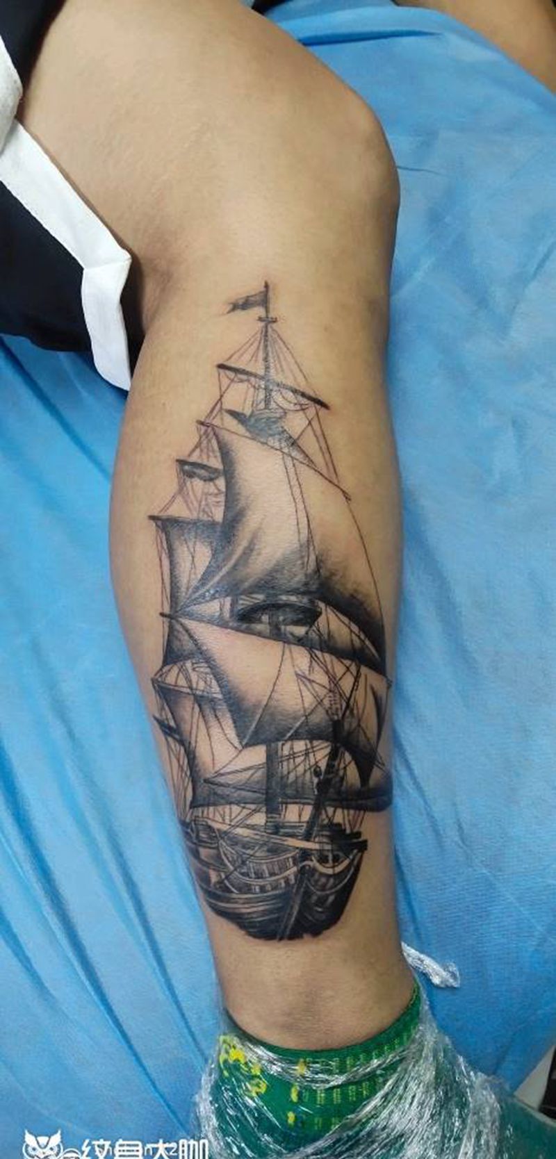 当前位置: 首页 >山西省太原市纹身店-太原翼龙刺青工作室纹身图案>帆船未完成纹身图片_腿部老传统纹身图案