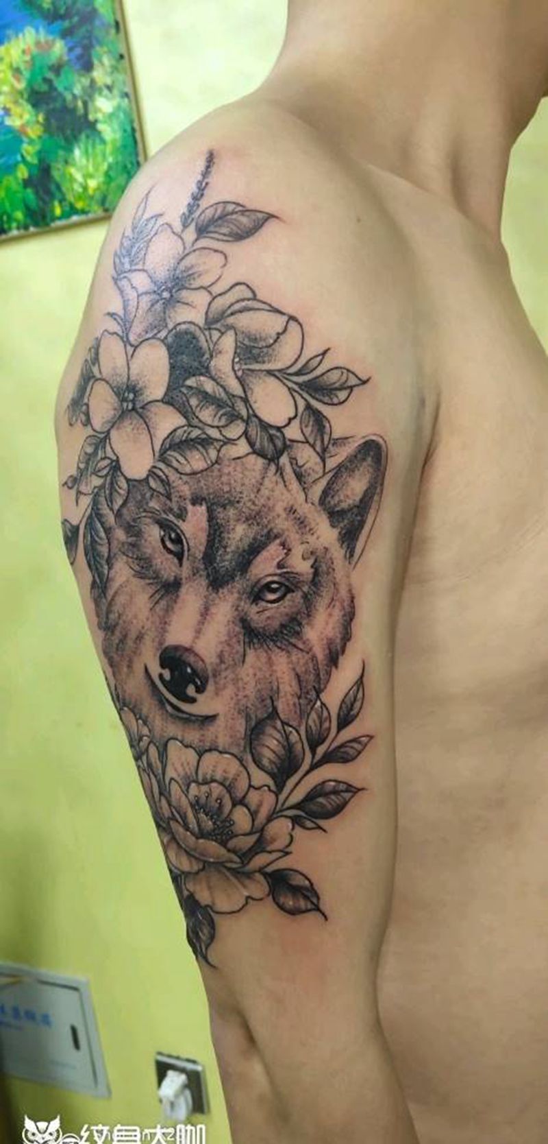 当前位置: 首页 >山西省太原市纹身店-太原翼龙刺青工作室纹身图案>狼花纹身图片_手臂点刺新传统纹身图案