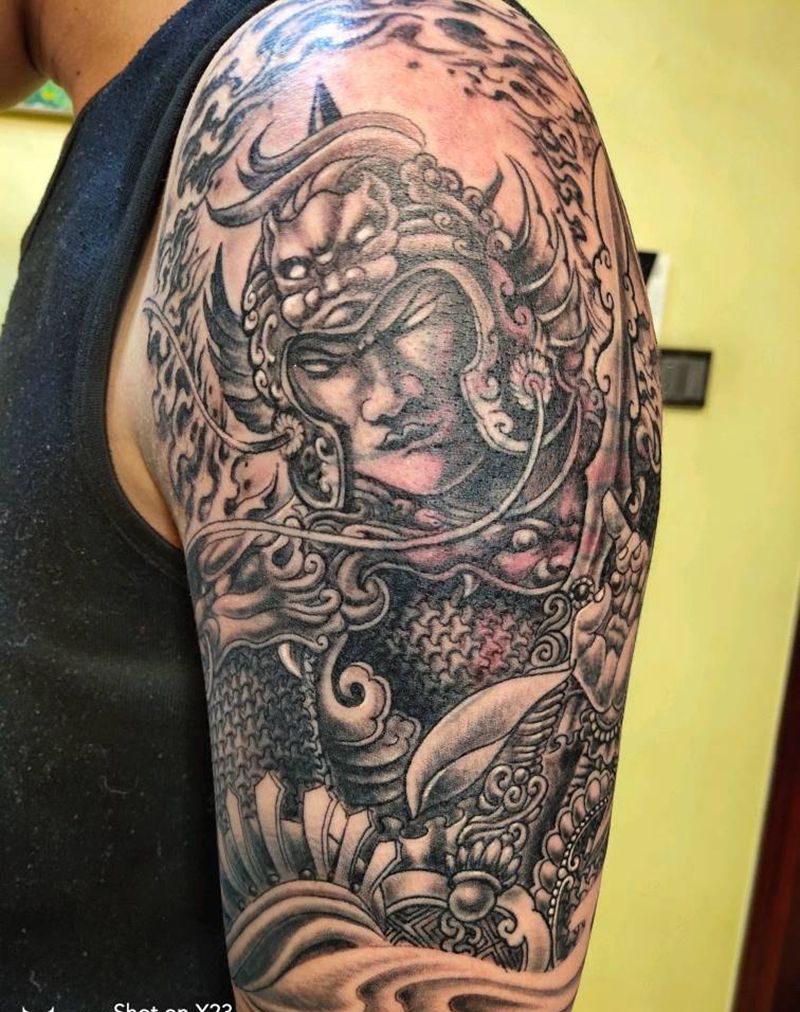 韦陀纹身图片_手臂肩部新传统老传统遮盖纹身图案