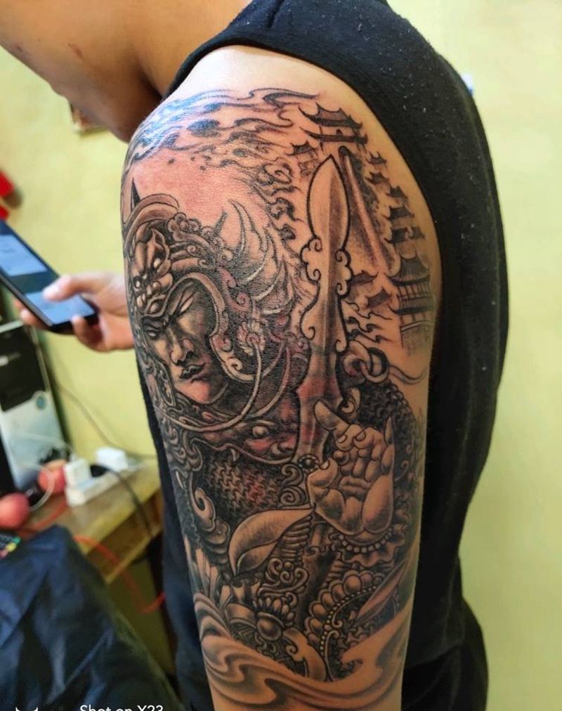 韦陀纹身图片_手臂肩部新传统老传统遮盖纹身图案