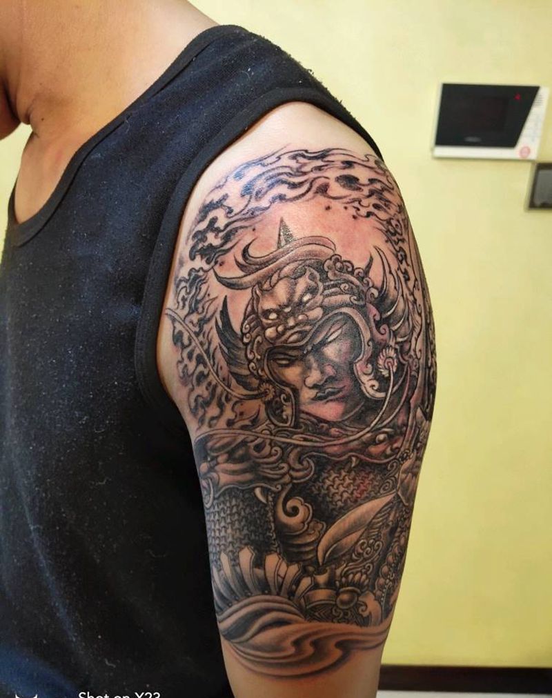 韦陀纹身图片_手臂肩部新传统老传统遮盖纹身图案