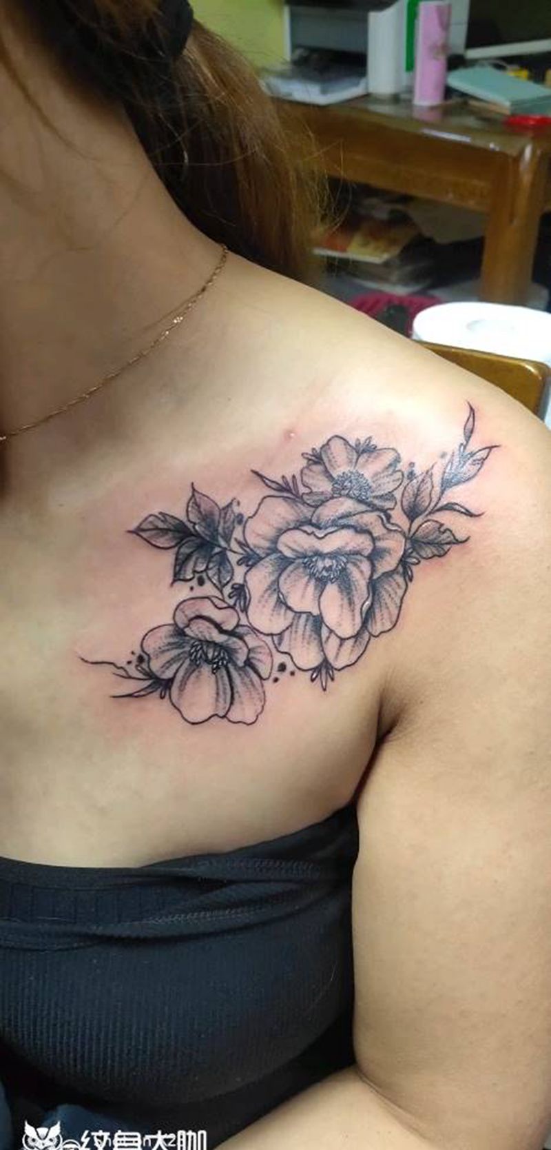 花容月色纹身图片_胸部点刺新传统纹身图案