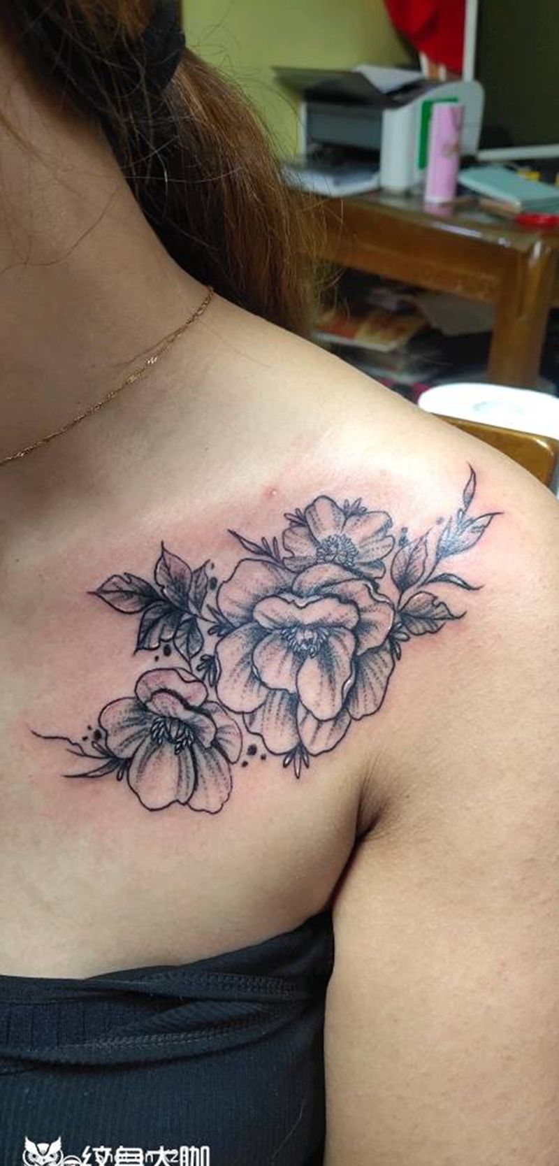 花容月色纹身图片_胸部点刺新传统纹身图案
