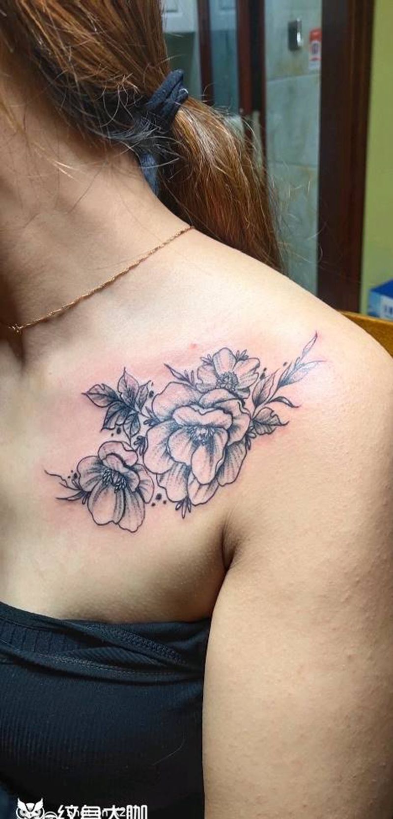 花容月色纹身图片_胸部点刺新传统纹身图案
