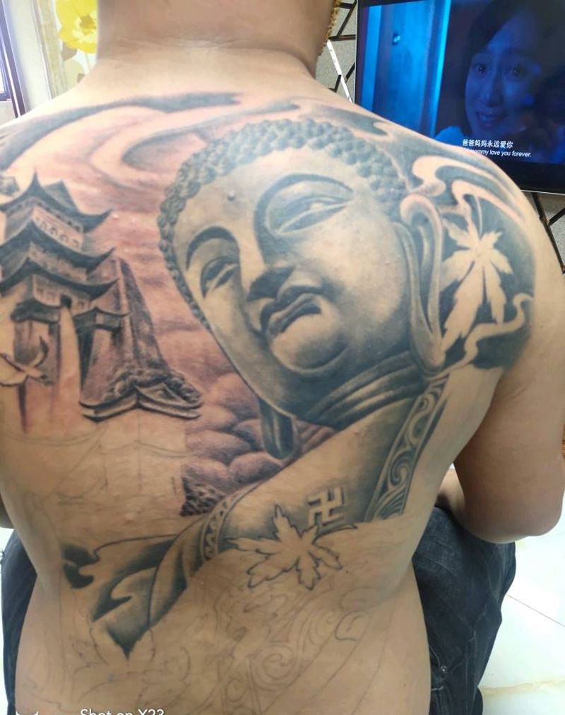 当前位置: 首页 >山西省太原市纹身店-太原翼龙刺青工作室纹身图案>大日如来纹身图片_背部臀部新传统纹身图案