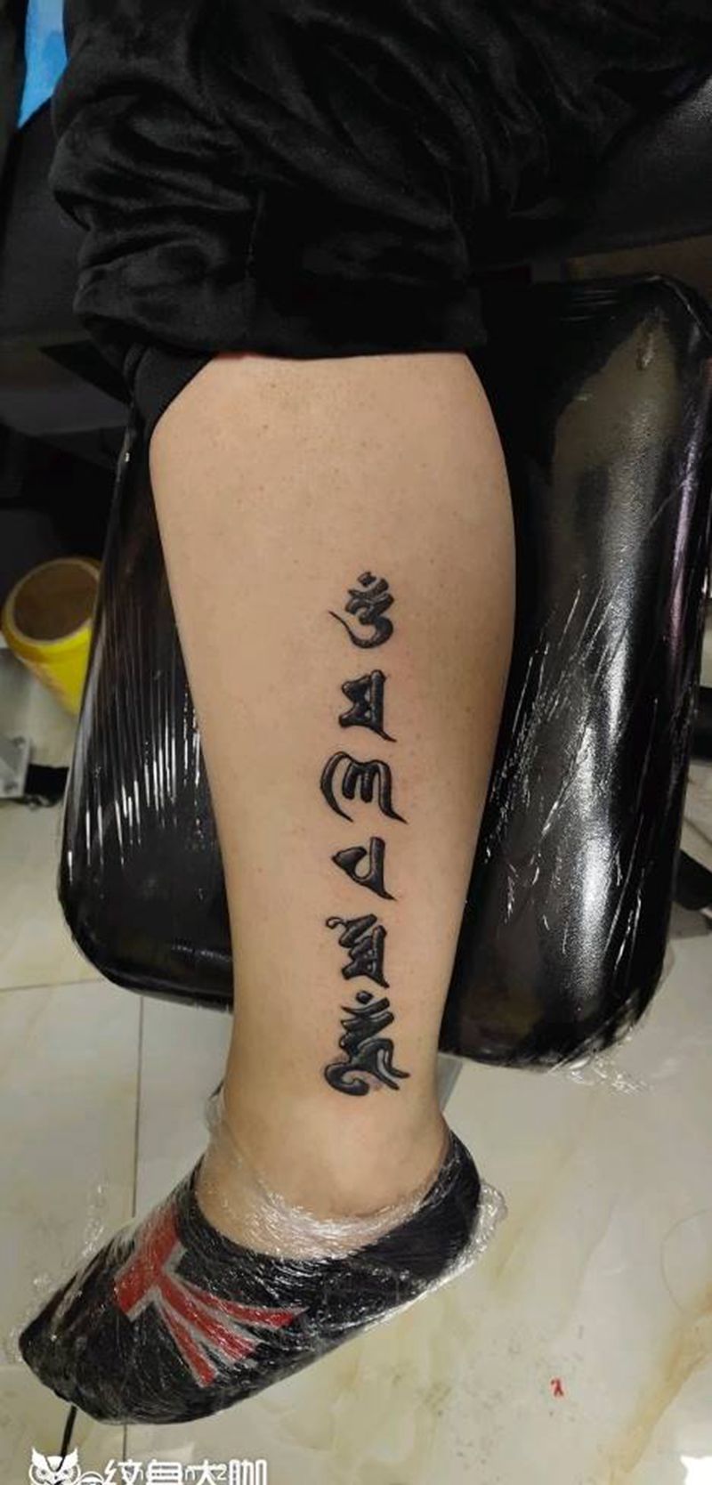 当前位置: 首页 >山西省太原市纹身店-太原翼龙刺青工作室纹身图案>六字真言点刺版纹身图片_脚部腿部新传统点刺纹身图案