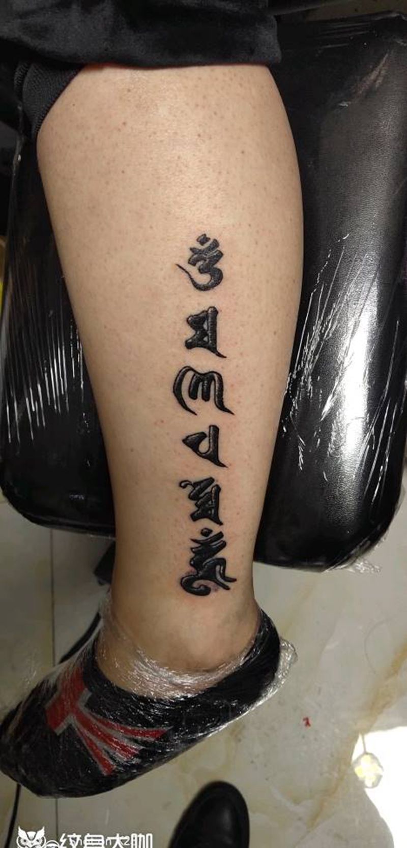 当前位置: 首页 >山西省太原市纹身店-太原翼龙刺青工作室纹身图案>六字真言点刺版纹身图片_脚部腿部新传统点刺纹身图案