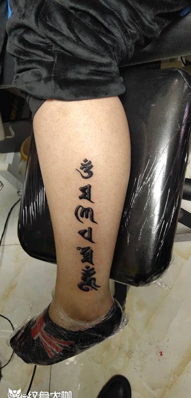 当前位置: 首页 >山西省太原市纹身店-太原翼龙刺青工作室纹身图案>六字真言点刺版纹身图片_脚部腿部新传统点刺纹身图案