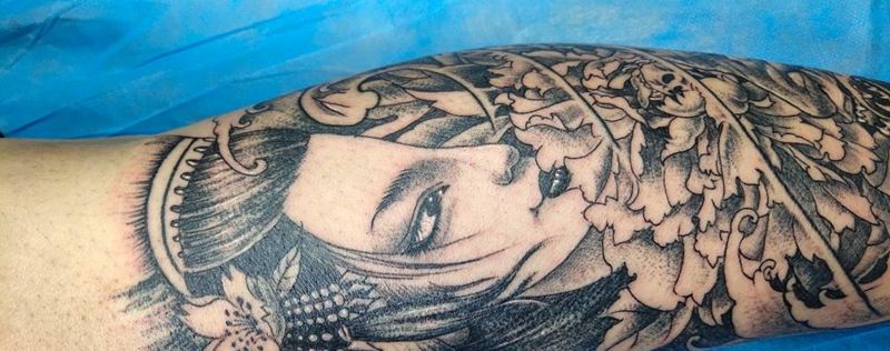 当前位置: 首页 >山西省太原市纹身店-太原翼龙刺青工作室纹身图案>艺妓班诺纹身图片_腿部手臂老传统点刺纹身图案