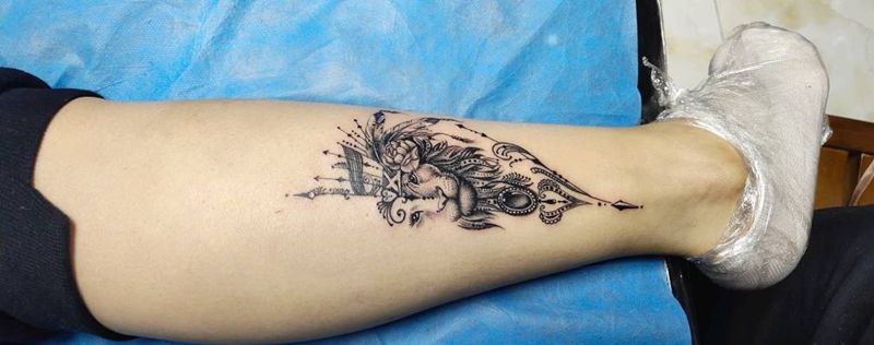 当前位置: 首页 >山西省太原市纹身店-太原翼龙刺青工作室纹身图案>狮子纹身图片_腿部手臂新传统点刺纹身图案