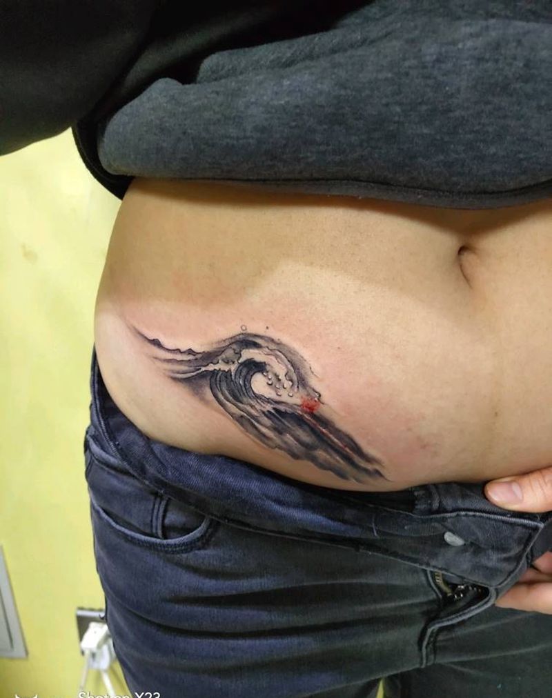 情侣纹身浪花纹身图片_腹部手臂新传统纹身图案