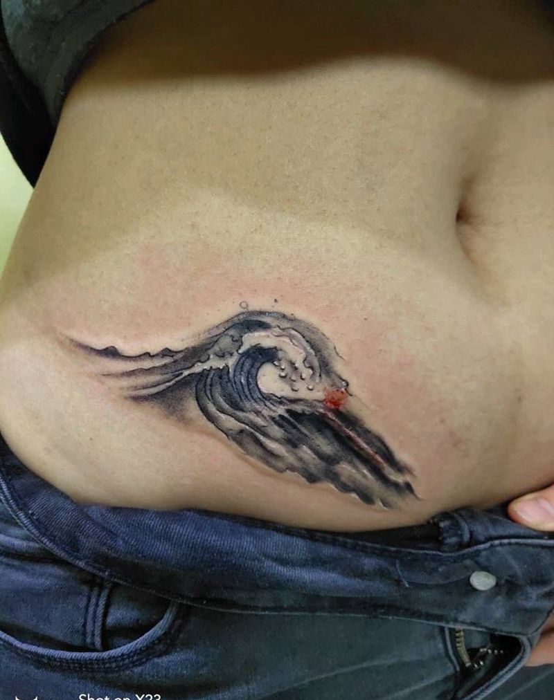 情侣纹身浪花纹身图片_腹部手臂新传统纹身图案