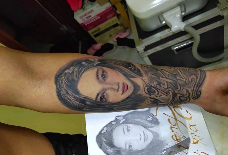 当前位置: 首页 >山西省太原市纹身店-太原翼龙刺青工作室纹身图案>肖像纹身图片_手臂手部新传统纹身图案