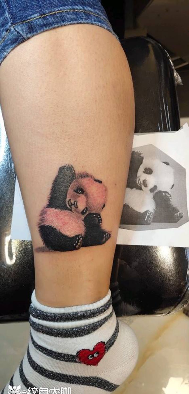 当前位置: 首页 >山西省太原市纹身店-太原翼龙刺青工作室纹身图案>国宝熊猫纹身图片_腿部欧美写实新传统纹身图案