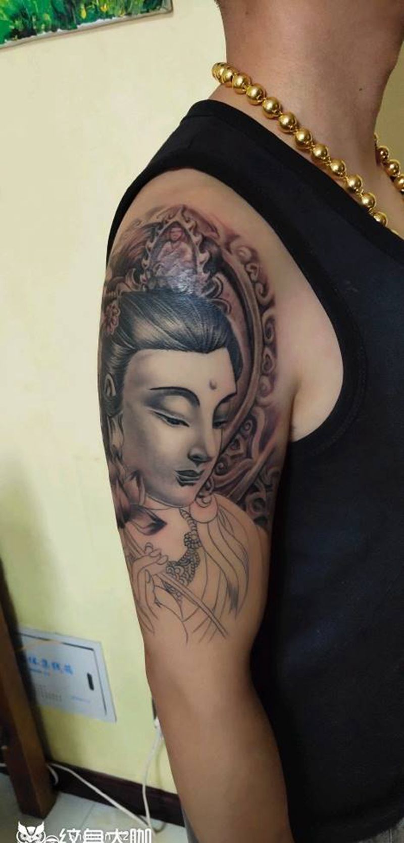 观音菩萨纹身图片_肩部手臂新传统纹身图案