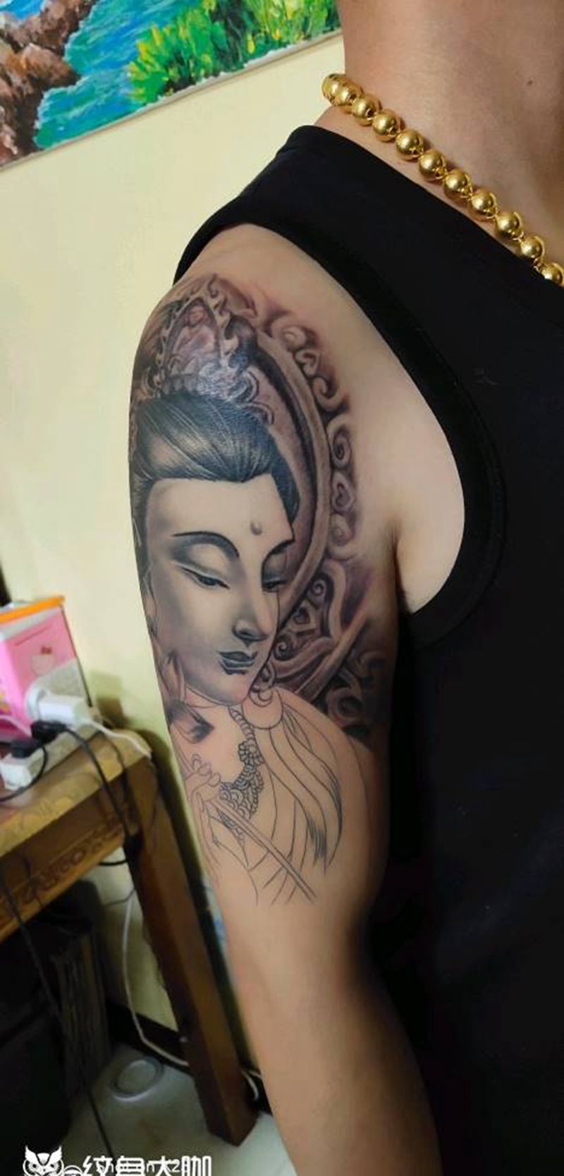 观音菩萨纹身图片_肩部手臂新传统纹身图案