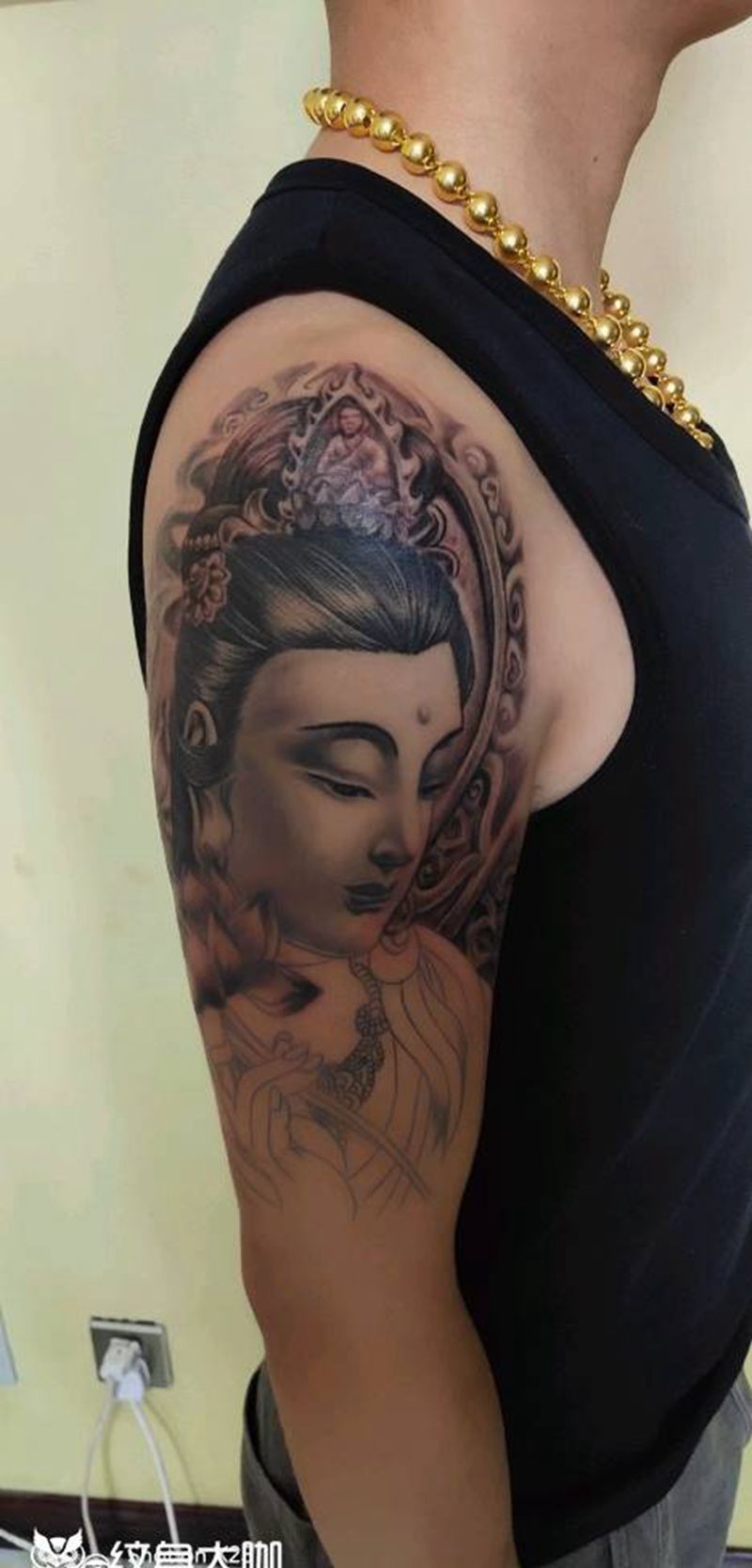 观音菩萨纹身图片_肩部手臂新传统纹身图案