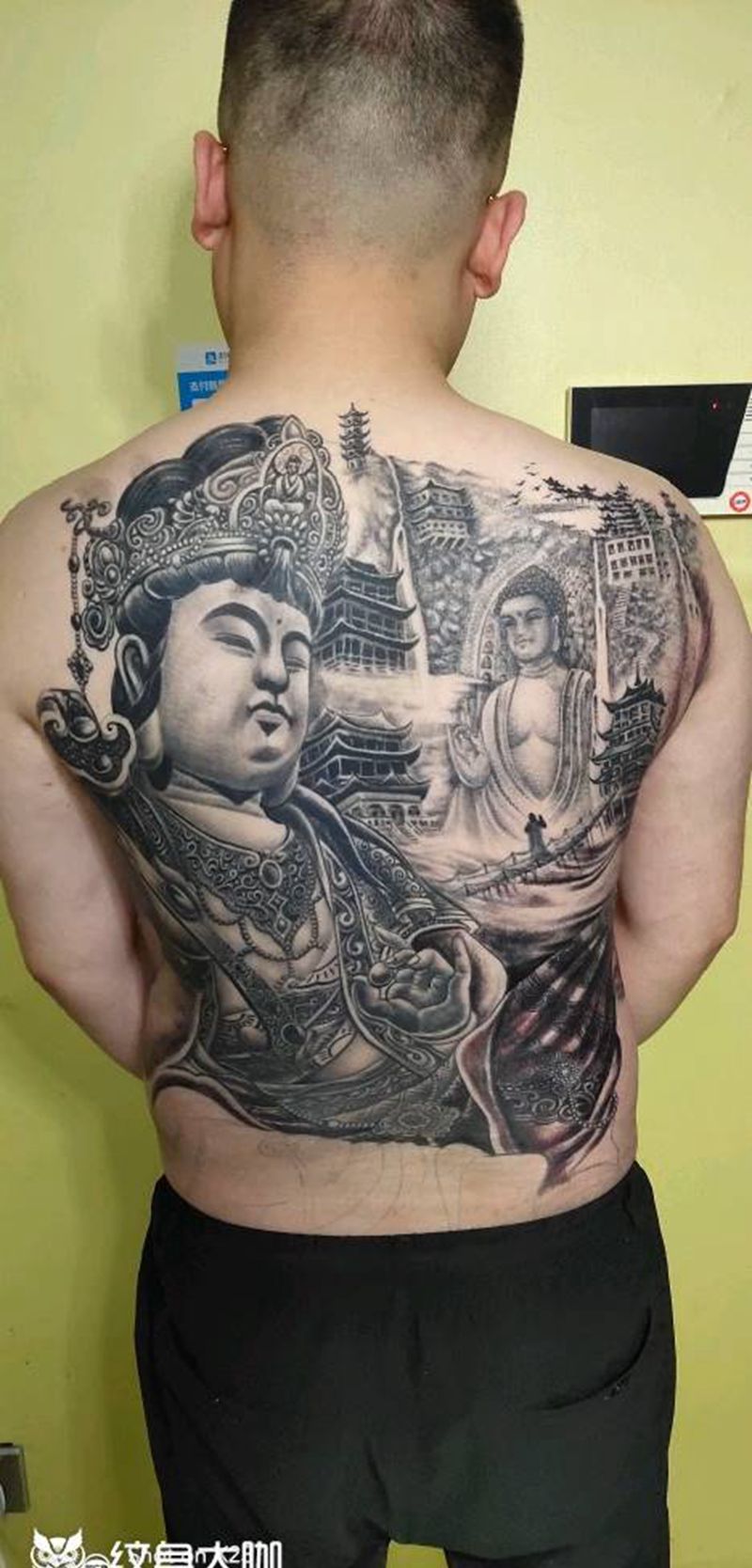 黑灰满背纹身图案