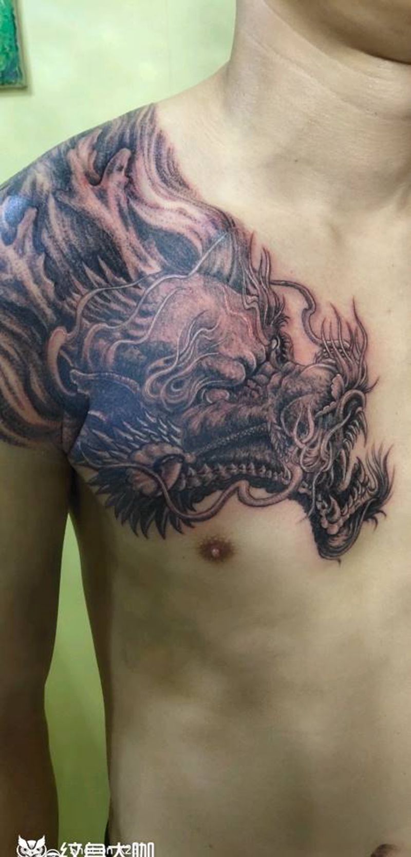 当前位置: 首页 >山西省太原市纹身店-太原翼龙刺青工作室纹身图案>过肩龙未完成纹身图片_肩部胸部新传统点刺纹身图案