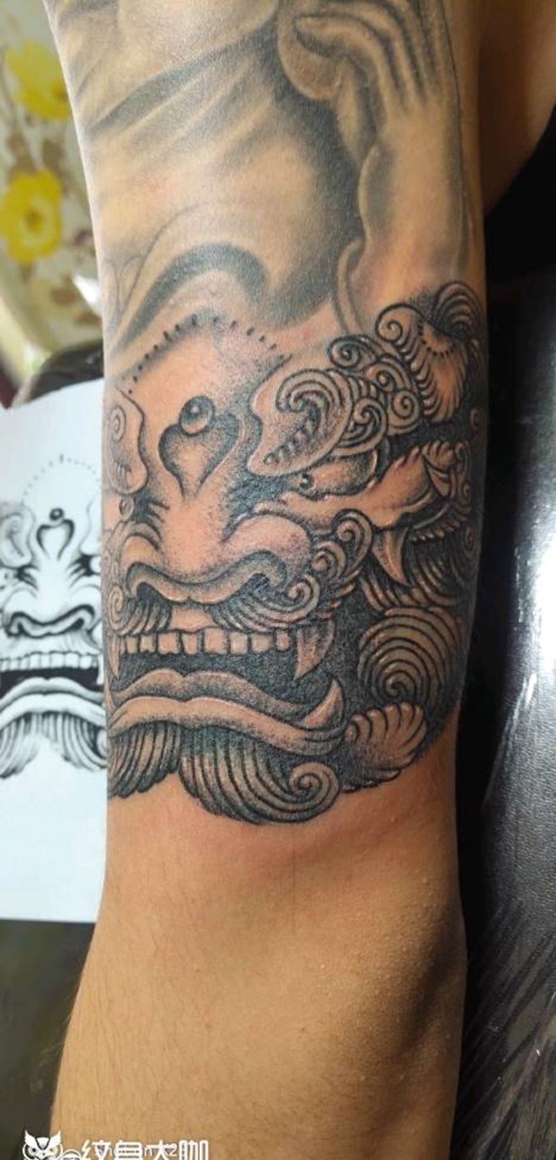 当前位置: 首页 >山西省太原市纹身店-太原翼龙刺青工作室纹身图案>唐狮纹身图片_手臂新传统点刺纹身图案