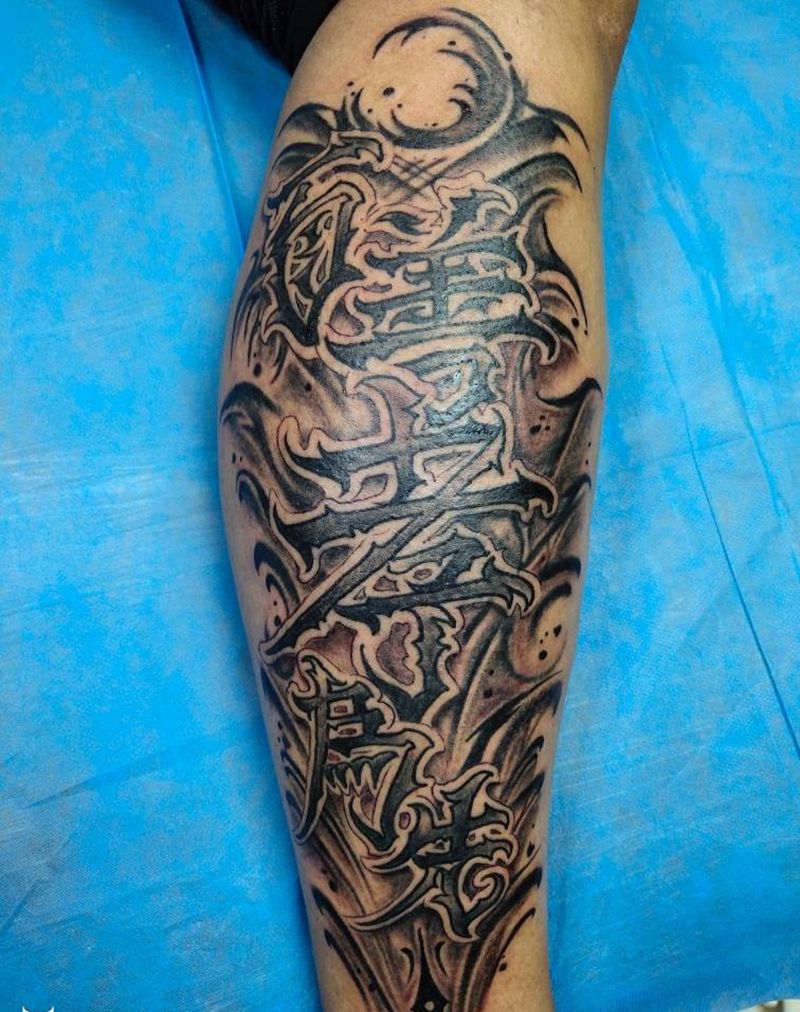 当前位置: 首页 >山西省太原市纹身店-太原翼龙刺青工作室纹身图案>百善孝为先纹身图片_腿部花体字新传统纹身图案