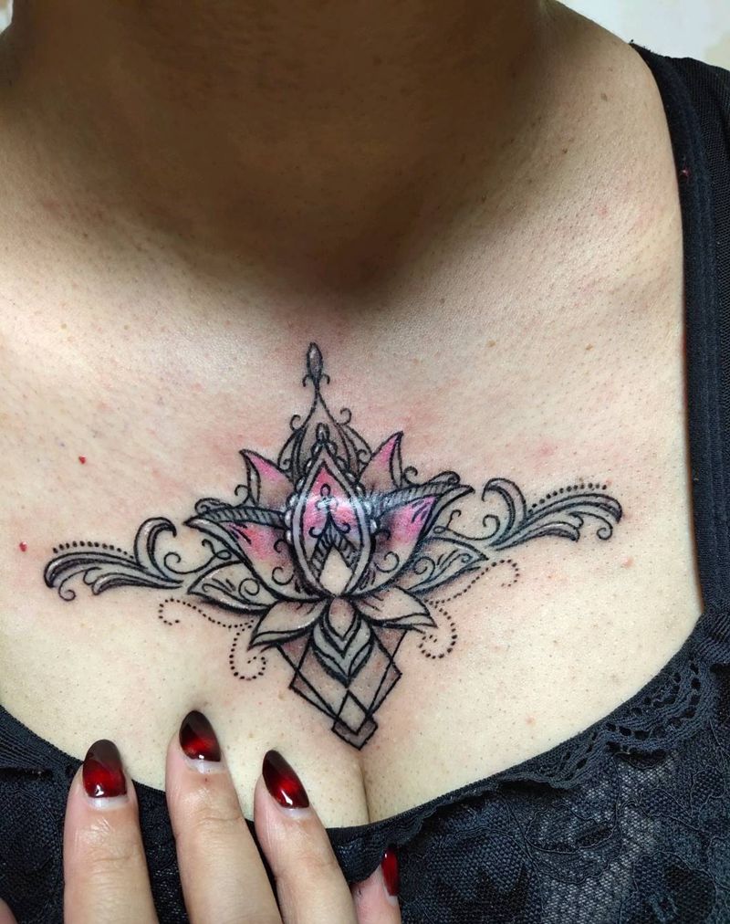 • 女性大花胸纹身_43张霸气漂亮的女性大花胸纹身图案作品