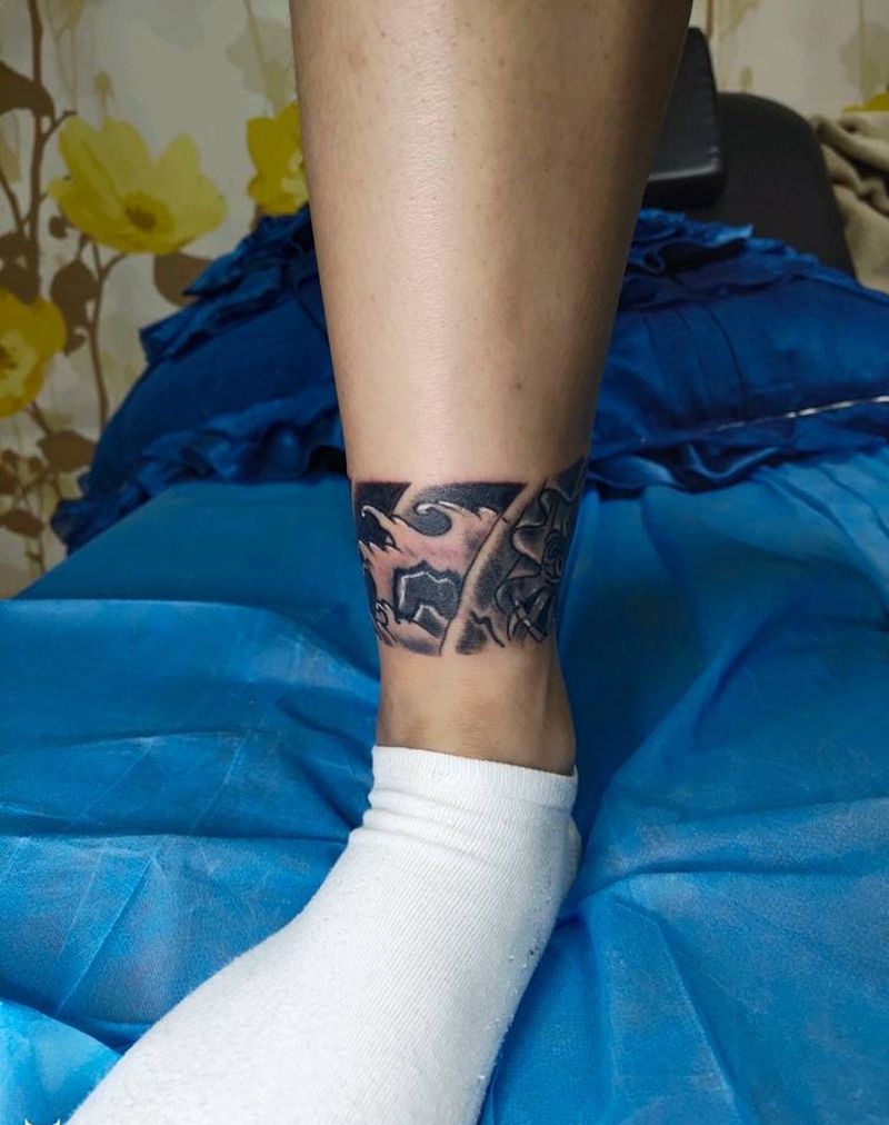 日式老传统臂环纹身图片_脚部腿部老传统遮盖日式纹身图案
