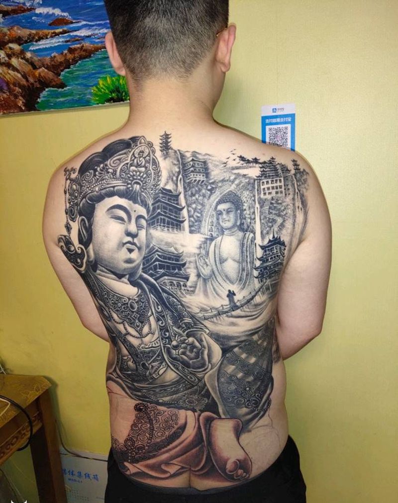 当前位置: 首页 >山西省太原市纹身店-太原翼龙刺青工作室纹身图案>普贤菩萨纹身图片_背部新传统点刺纹身图案