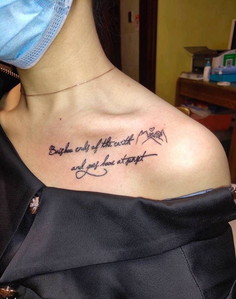 锁骨英文字母小纹身纹身图片_胸部肩部老传统新传统纹身图案