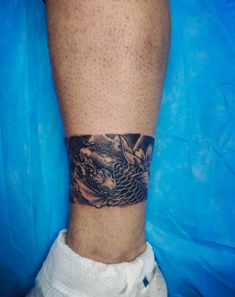 招财锦鲤纹身图片_脚部新传统老传统日式纹身图案