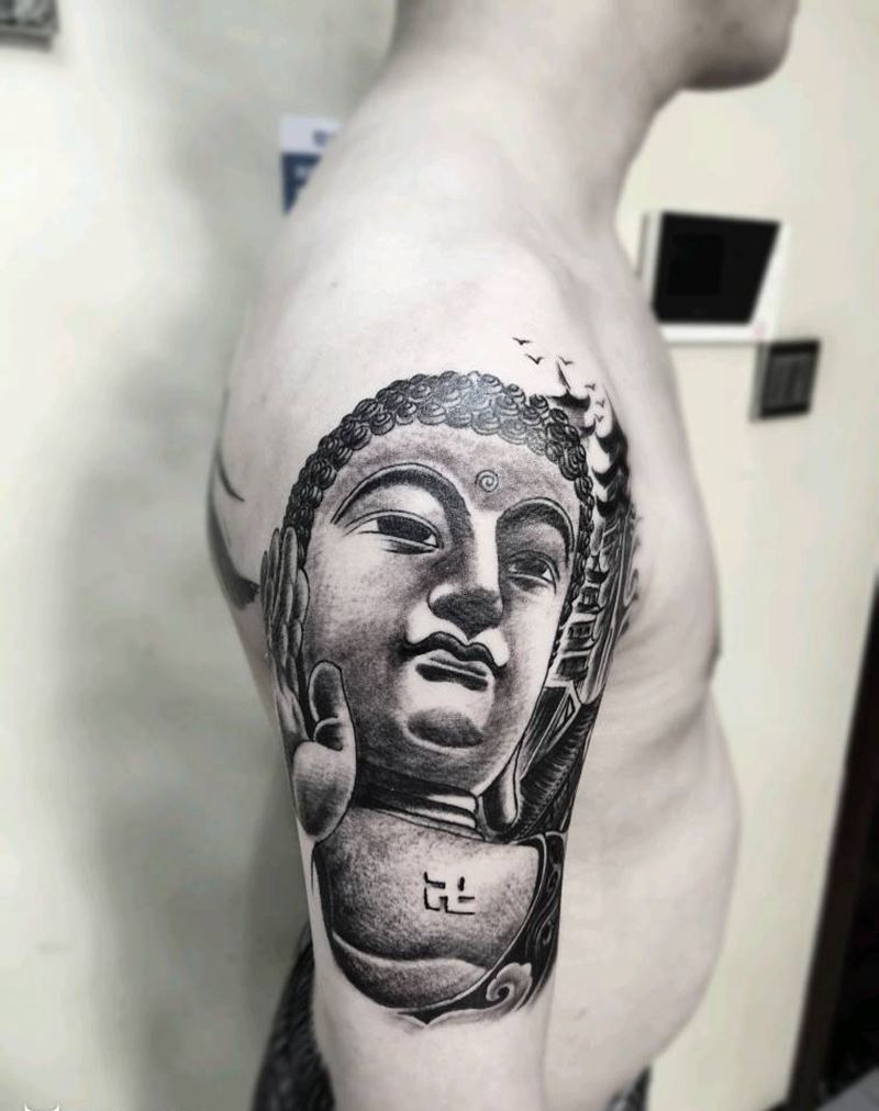 当前位置: 首页 >山西省太原市纹身店-太原翼龙刺青工作室纹身图案>大日如来佛纹身图片_手臂新传统纹身图案