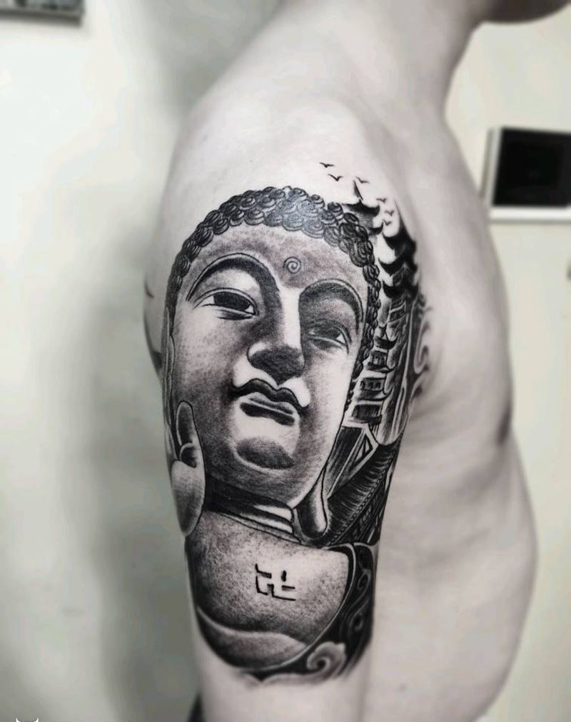 当前位置: 首页 >山西省太原市纹身店-太原翼龙刺青工作室纹身图案>大日如来佛纹身图片_手臂新传统纹身图案